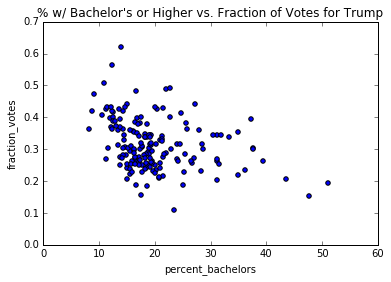 title='% w/ Bachelor\'s or Higher vs. Fraction of Votes for Trump' )